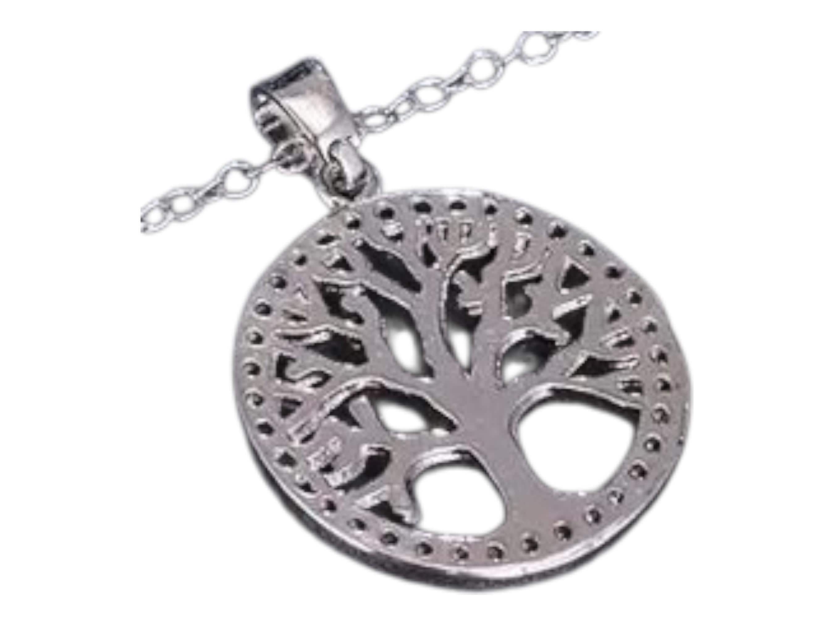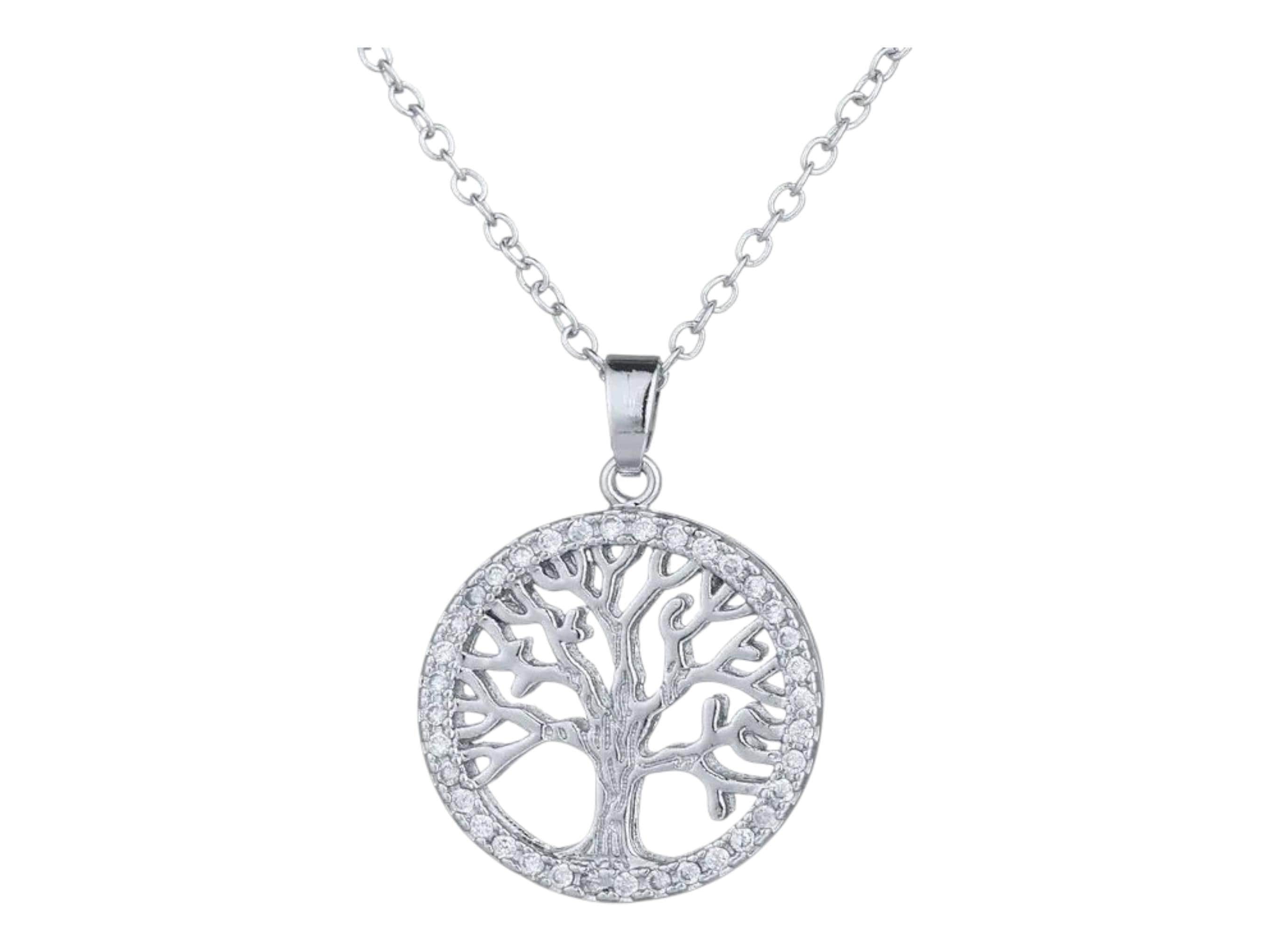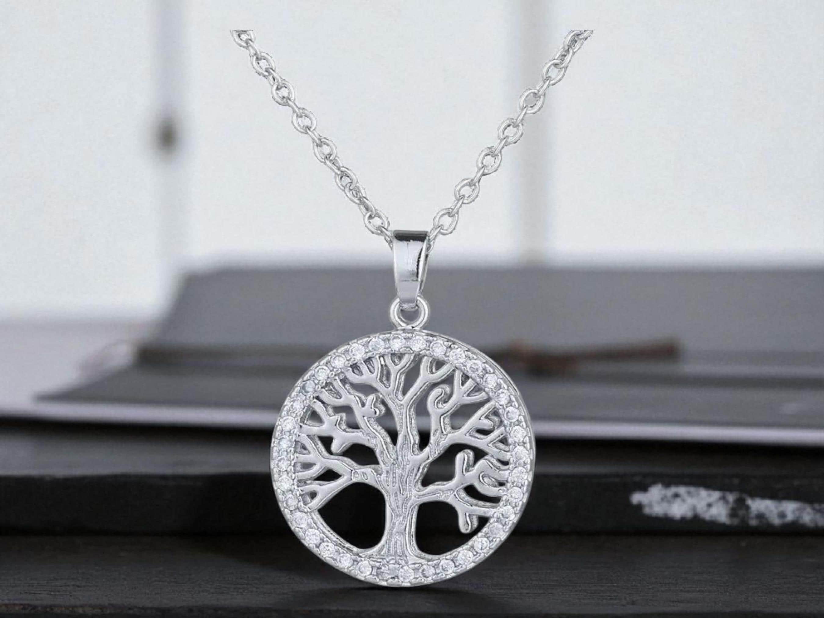 Tree of Life Pendant Necklace – Sterling Silver with Crystal Accents