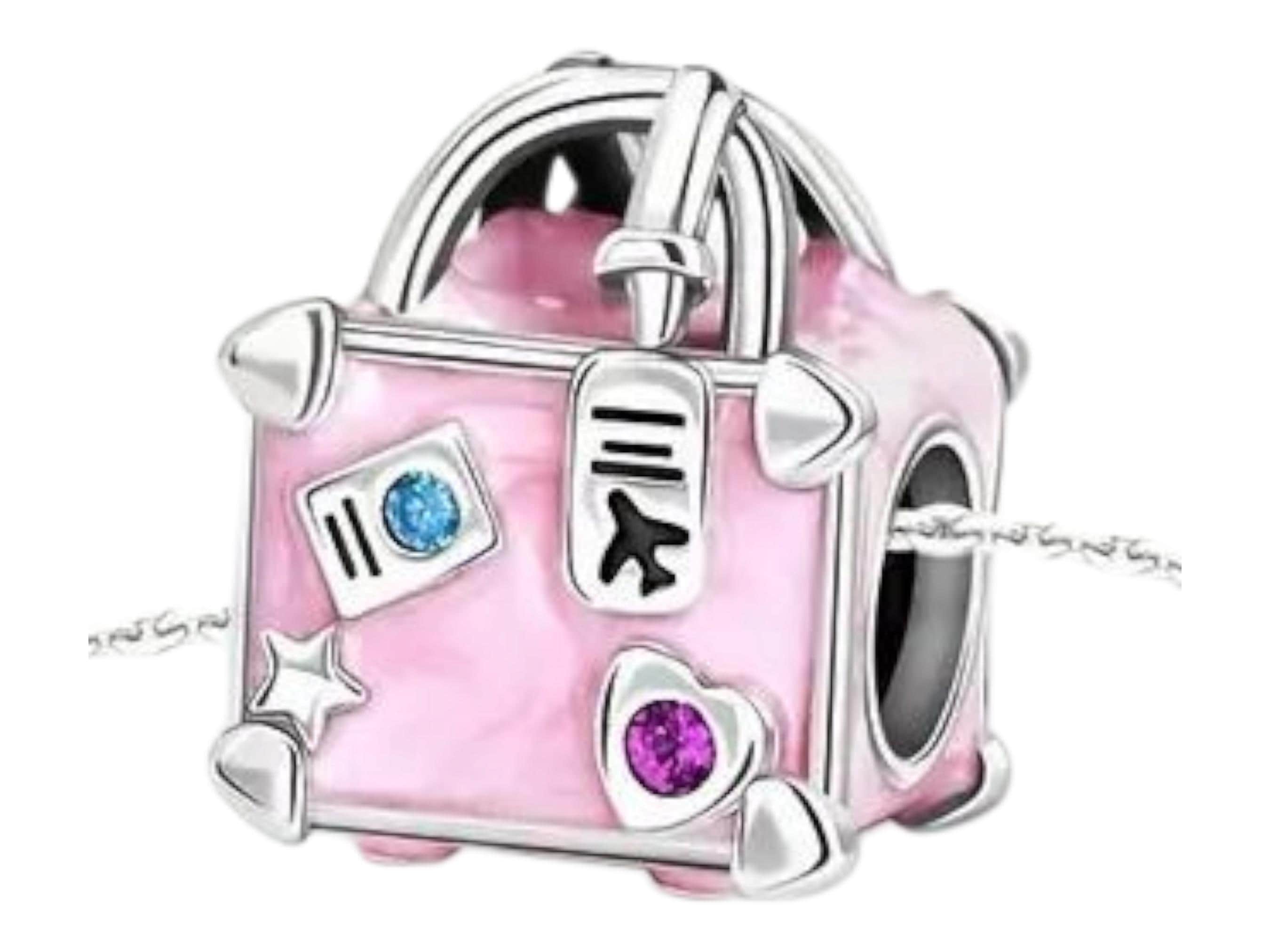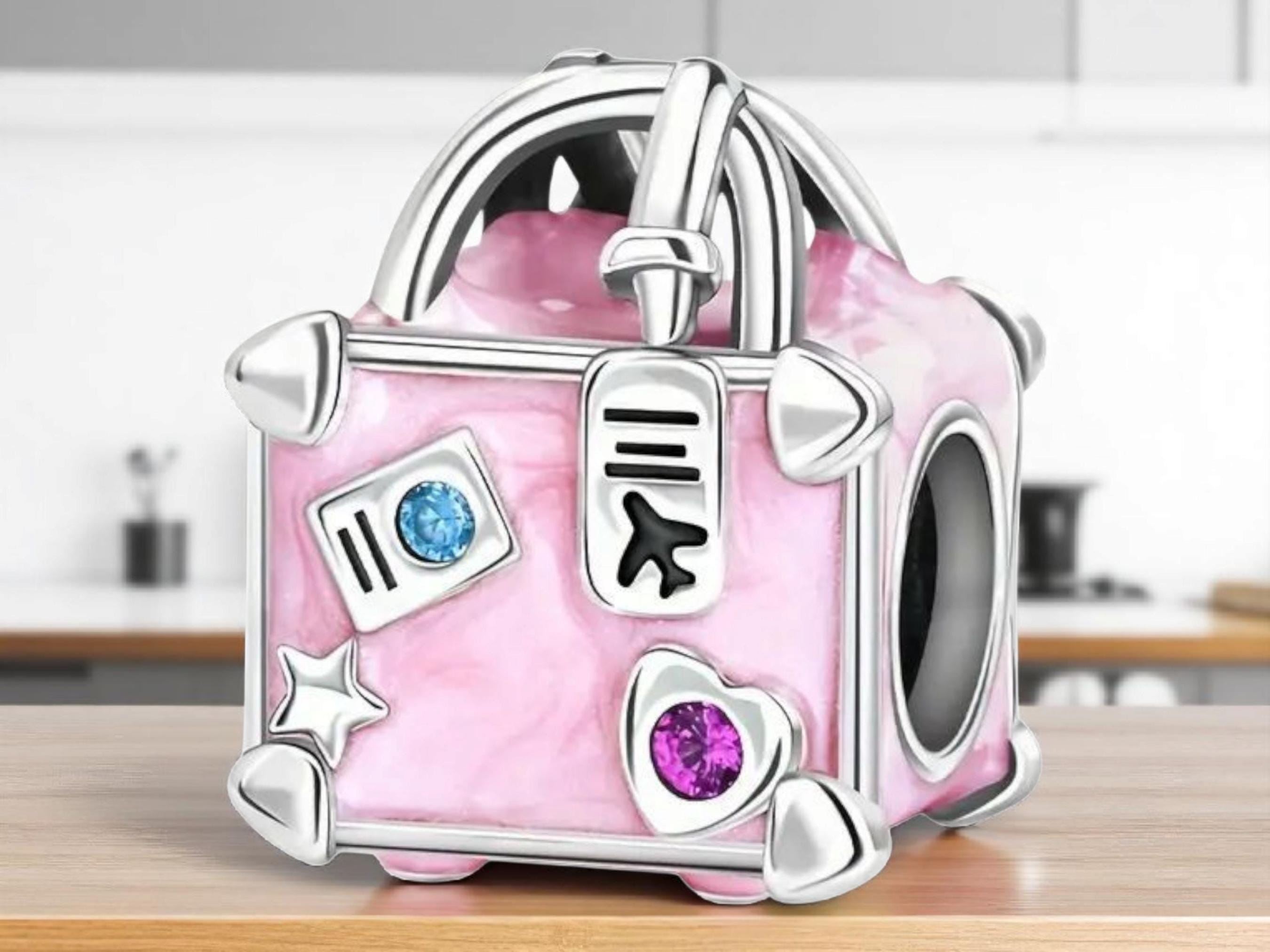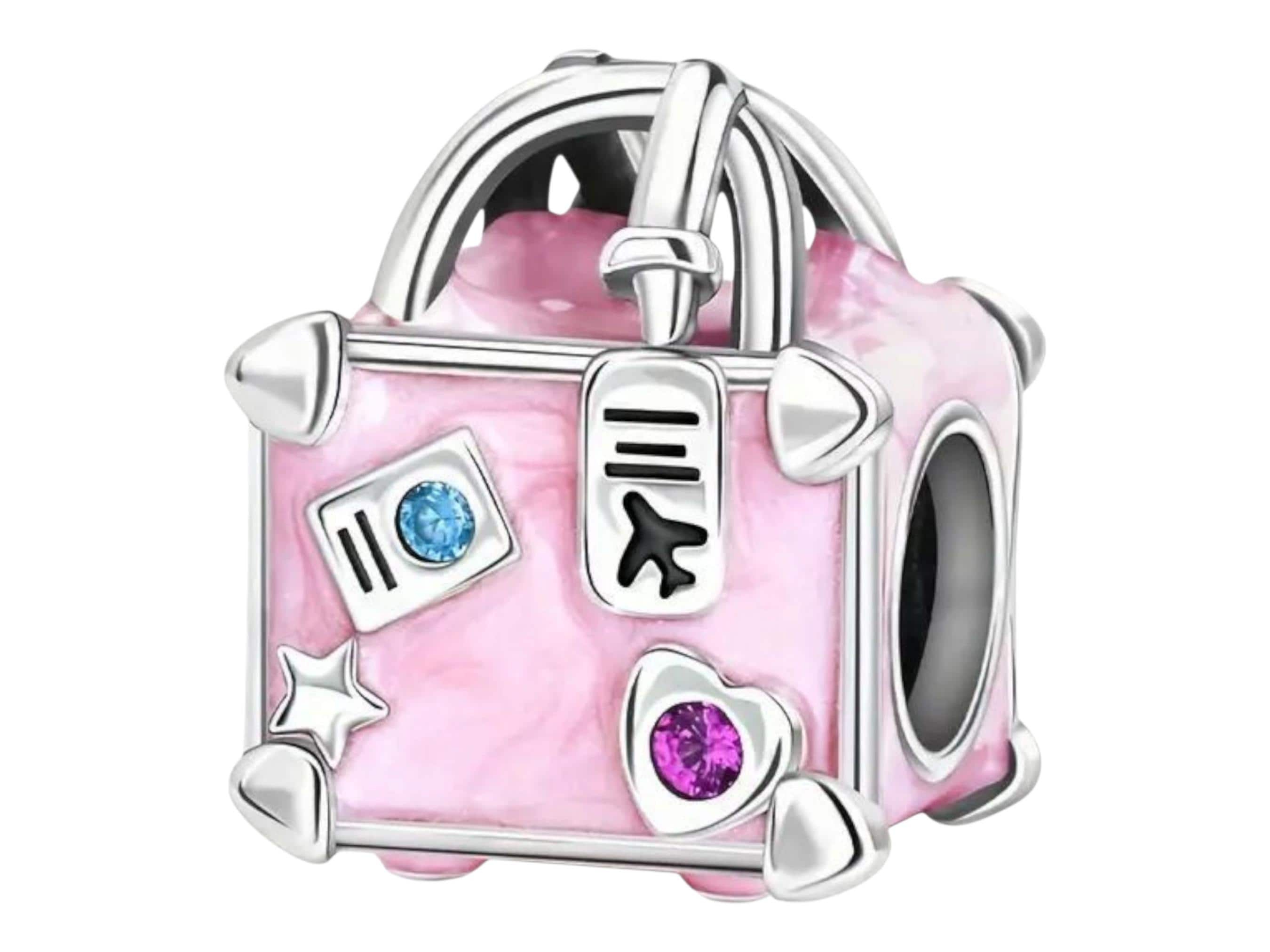 Sterling Silver Travel Charm, Fits Pandora Bracelet, Travel Gifts, Suitcase Charm, Pink Suitcase, Travel Pendant, Gift for Traveler