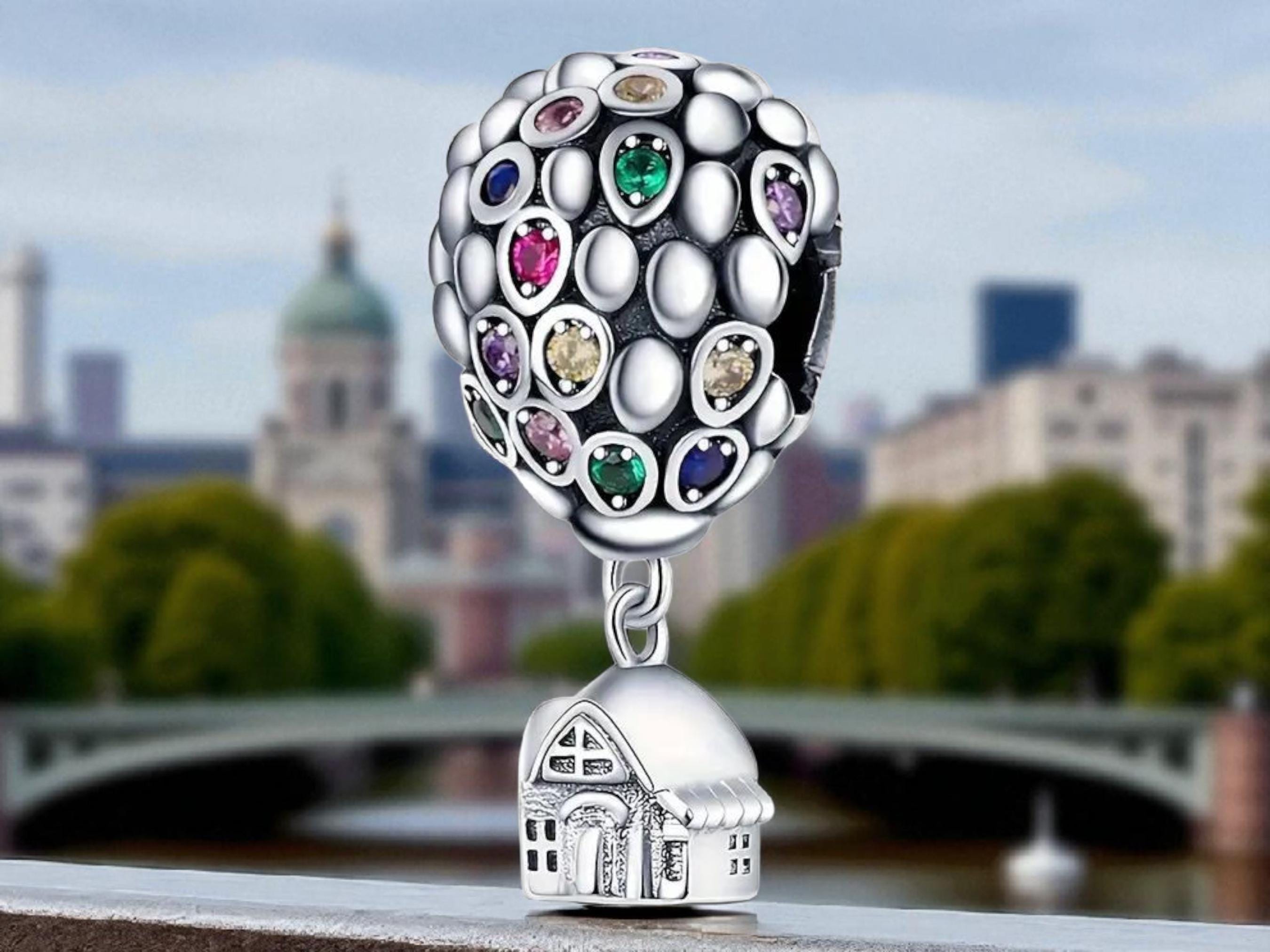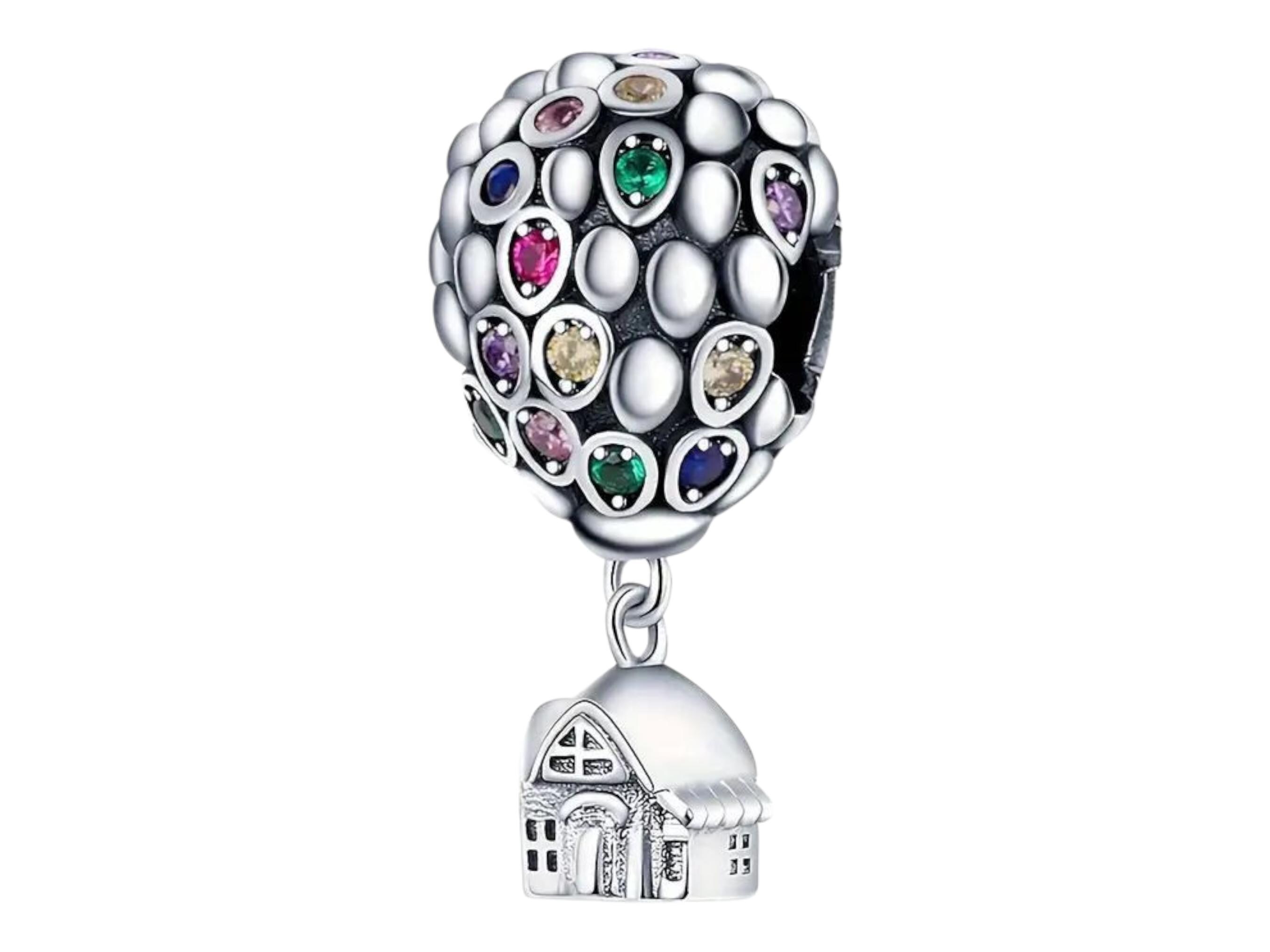 Bring a touch of color, joy, and wanderlust to your charm bracelet with this sparkling hot air balloon house charm.