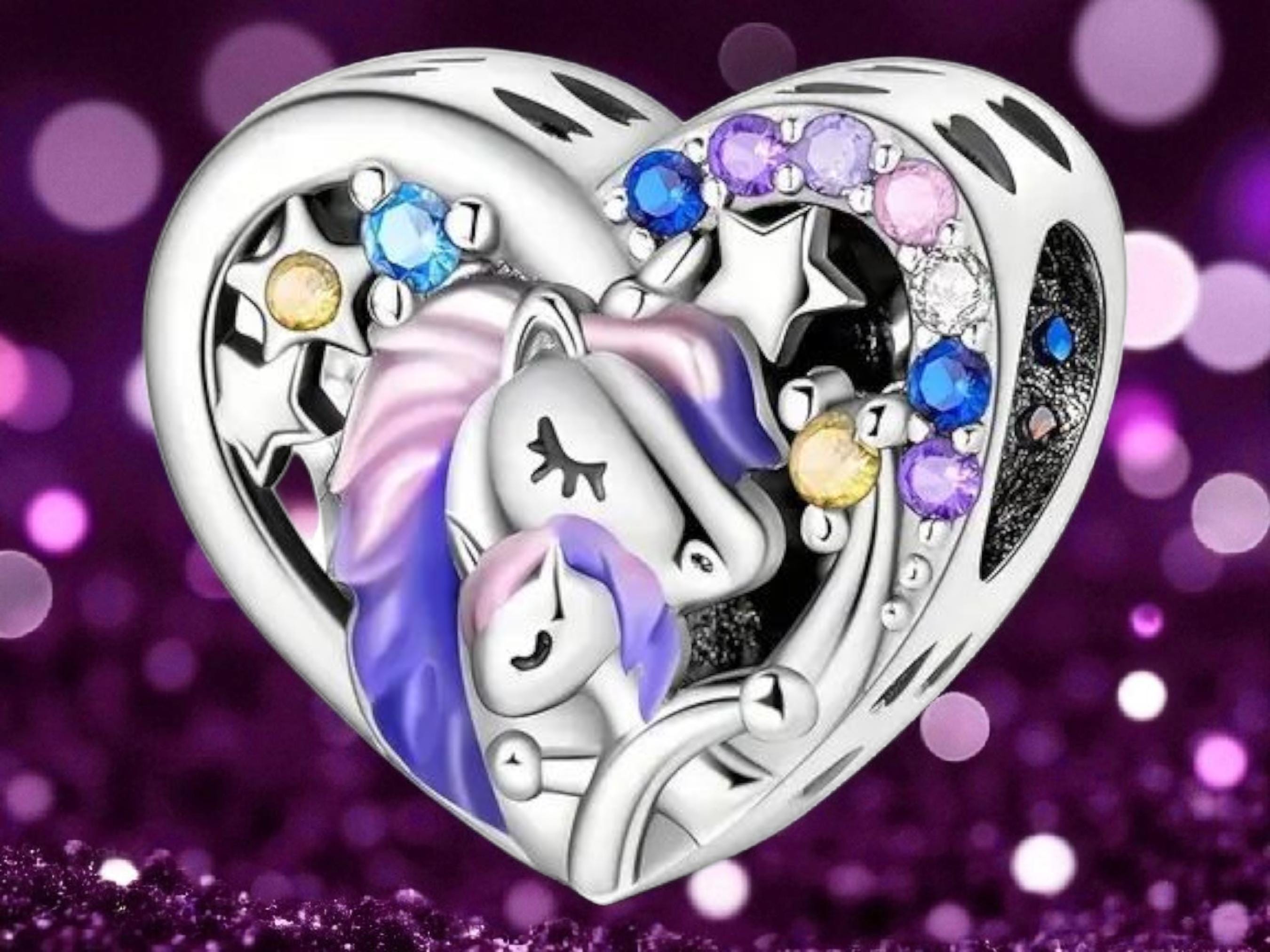 Bring a little sparkle and fantasy to your jewelry collection with this heartwarming unicorn charm! 🌙🦄💜