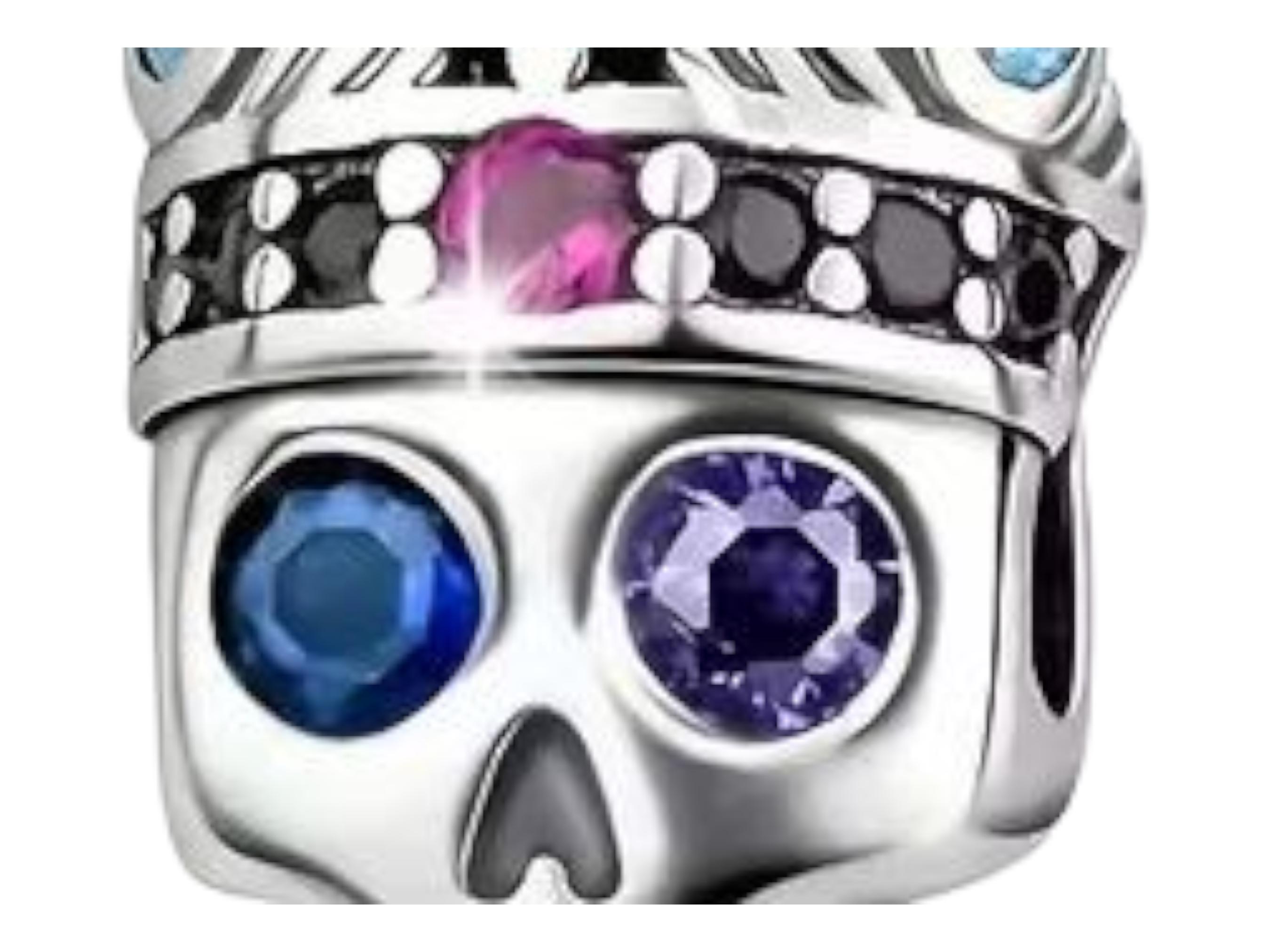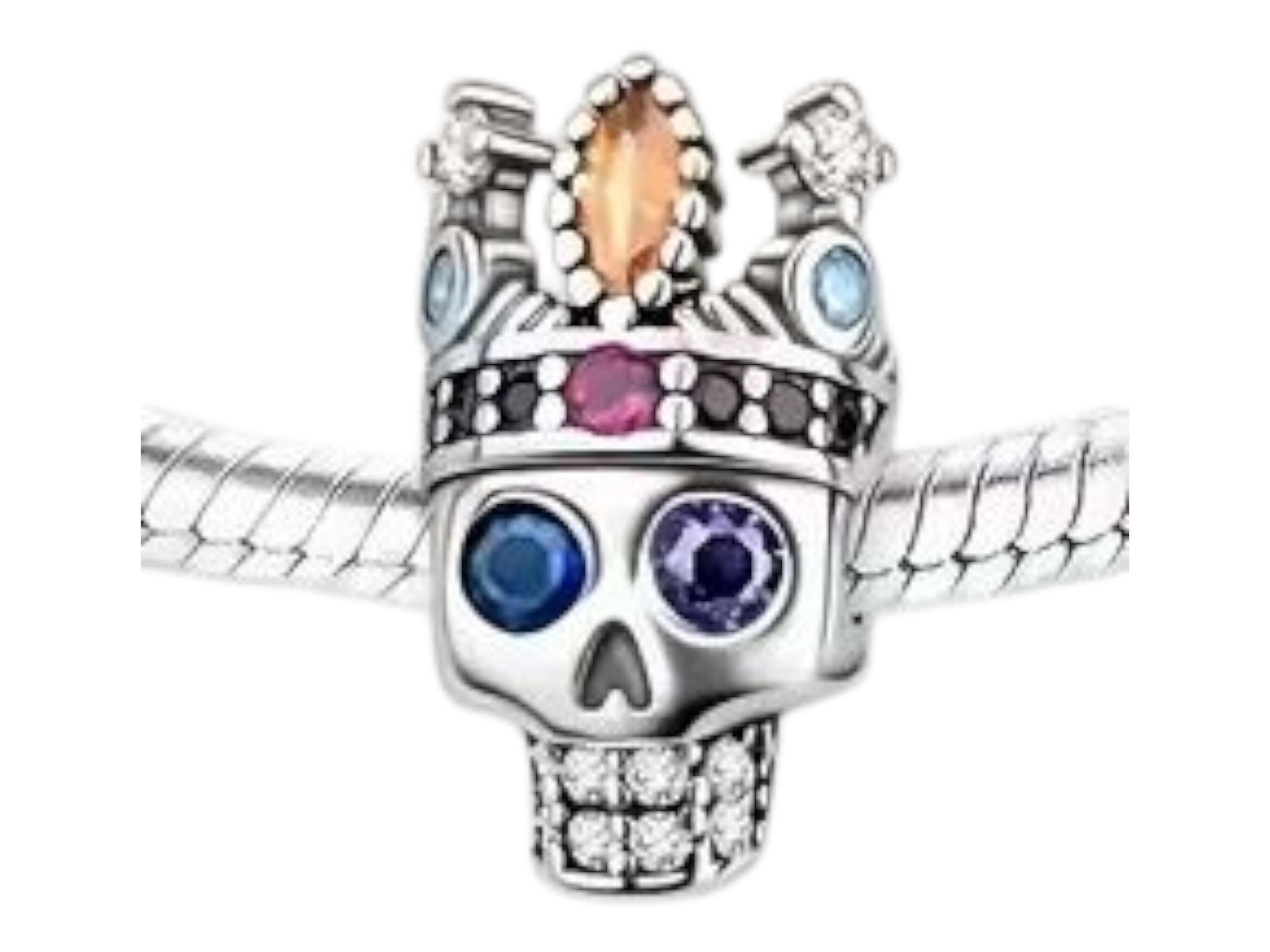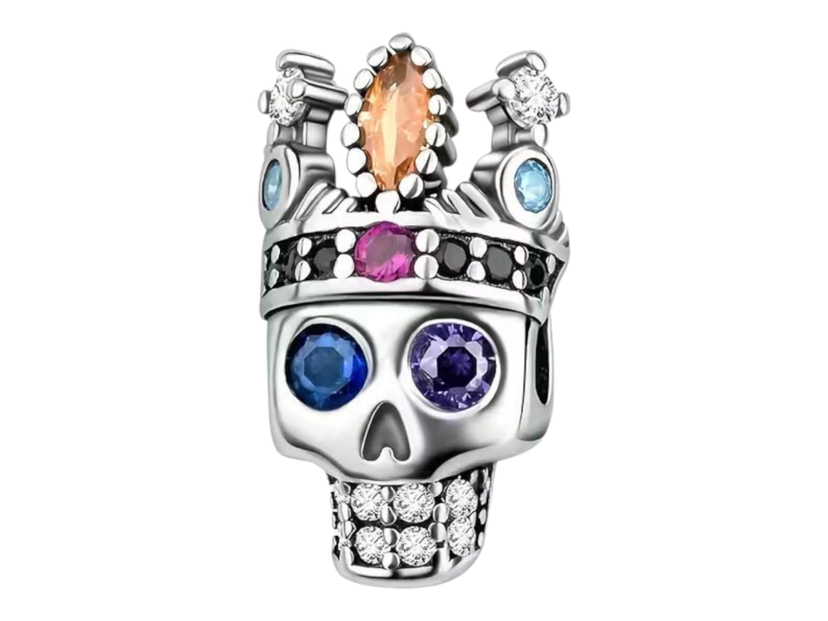Symbolizing strength, transformation, and self-expression, this crowned skull charm celebrates individuality and confidence. The colorful gemstones bring life to the design, making it perfect for anyone who loves bold, statement accessories with a touch of mystery.