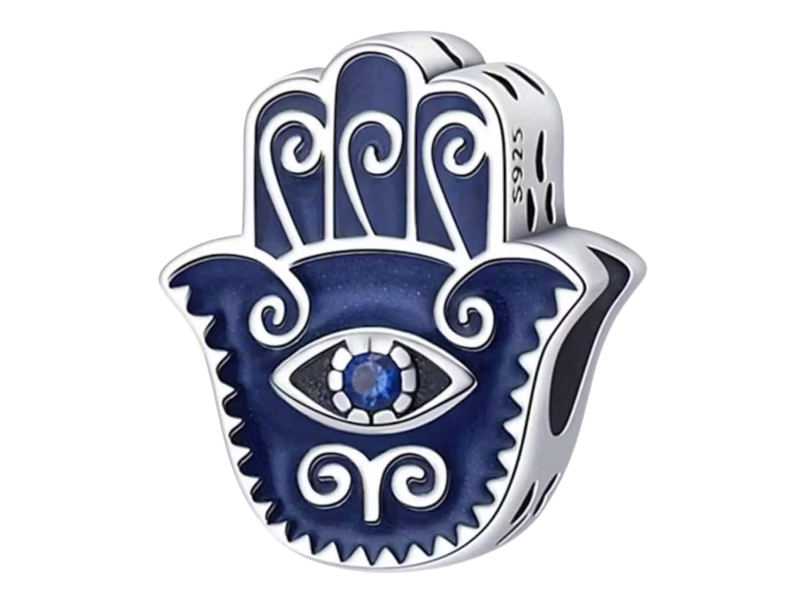 Hamsa Hand Evil Eye Charm – Sterling Silver 925 | Blue Enamel Protection Bead